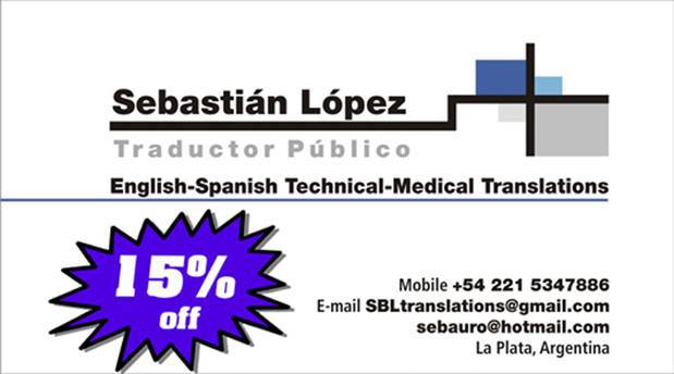 15% de DESCUENTO con relación al arancel mínimo sugerido por el Colegio de Traductores Públicos de la Ciudad de Bs. As