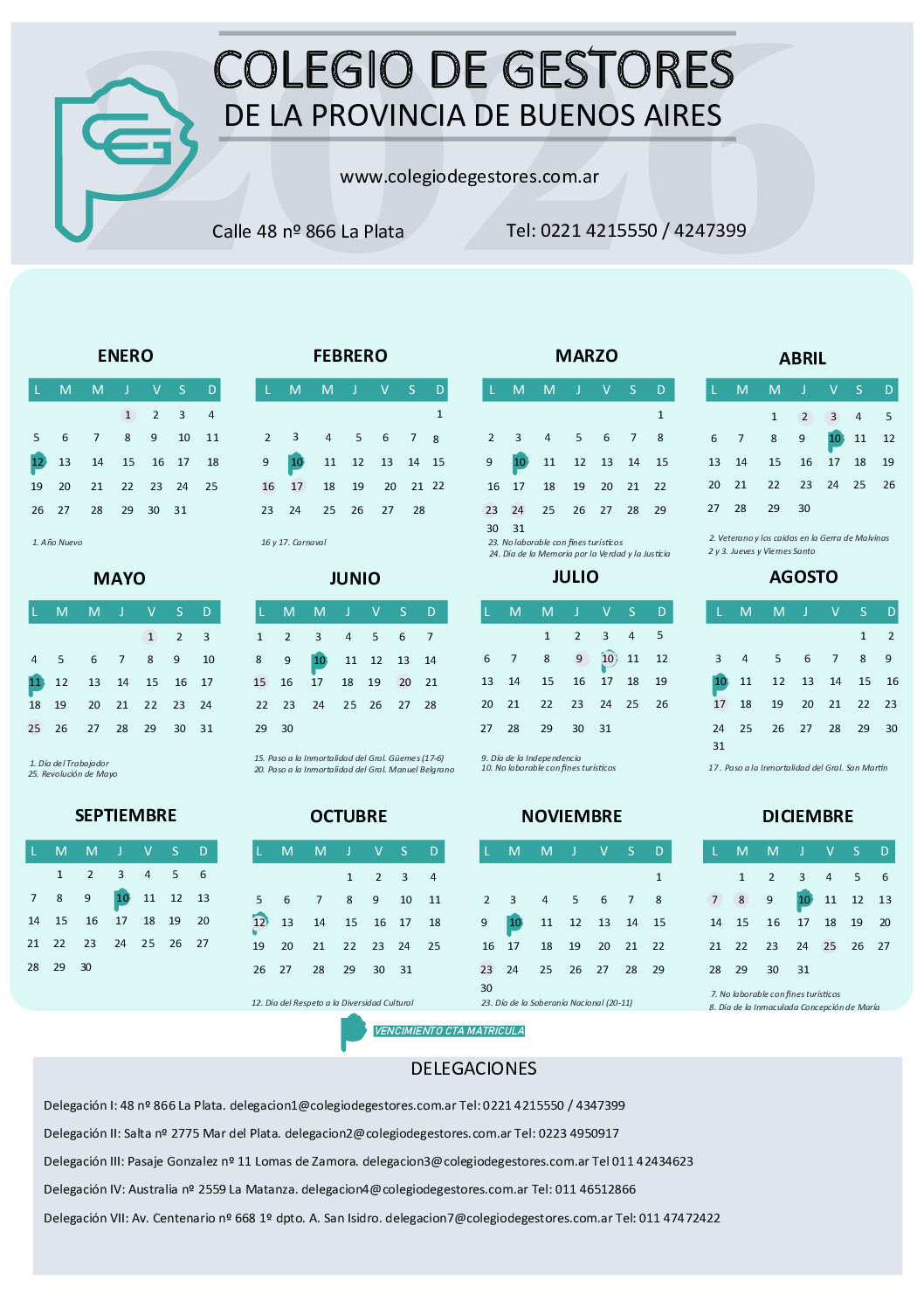 El Colegio de Gestores de la provincia de Buenos Aires informa que la Sede Central y las Delegaciones permanecerán cerradas el próximo jueves 5 de febrero, con motivo de celebrarse [...]